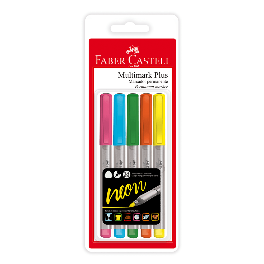 Marcadores Faber Castell Multimark Plus Neón 5 Colores