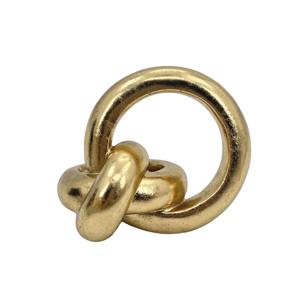 Figura tipo nudo con acabado dorado que aporta un toque moderno y artístico a cualquier espacio.