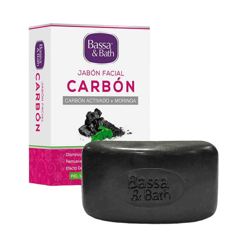 Bassa & Bath® Jabón Facial de Carbón ha sido formulado con una combinación de Carbón Activado + Moringa para uso en pieles mixtas o grasas que requieran una limpieza y exfoliación profunda.