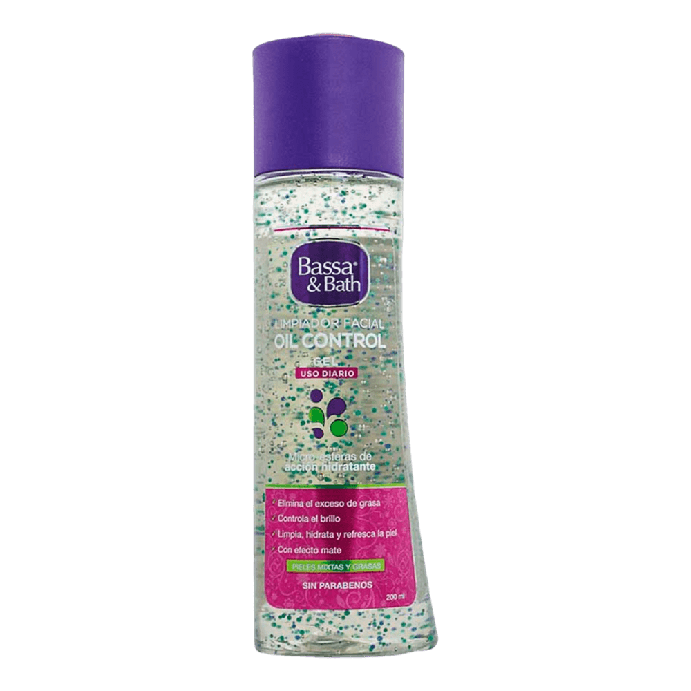 Bassa & Bath® Limpiador Facial Oil Control es un gel limpiador especialmente formulado para disminuir y regular los niveles de grasa en el rostro, previniendo la aparición de acné y espinillas.