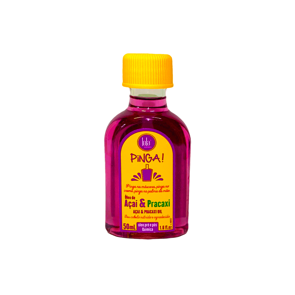 Pinga Acaí es un tratamiento profundamente nutritivo, que puede usarse como protector de color y del daño ambiental, o para reparar las puntas abiertas. Formulado con aceites vegetales orgánicos, que previene la decoloración del color y reduce el frizz. Proporciona brillo intenso. Su textura se absorbe al instante y tiene un maravilloso aroma. Es rico en ácidos grasos. El aceite de Pracaxi, hidrata profundamente las hebras ayudando a reducir el encrespamiento y con el aceite de Acai, forman una mezcla llena de proteínas y vitaminas C, B1 y B2, que ayudan a fortalecer las hebras dañadas por los productos químicos.