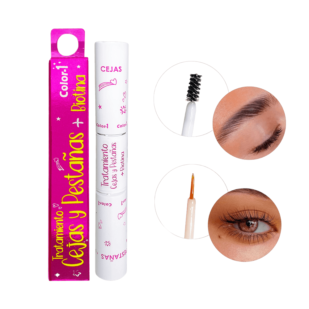 El tratamiento para cejas y pestañas de Color 1, contiene ingredientes como la biotina para que tus cejas y pestañas reciban el cuidado necesario para crecer más fuertes y largas. Aplica unas gotas dos veces al día (antes del maquillaje y de dormir) y prepárate para ver resultados increíbles en 8 semanas. ¡Tu mirada nunca se vio tan espectacular!