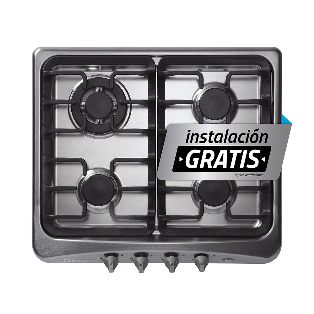 | Contiene | 4 quemadores, tablero de acero inoxidable, encendido electrónico en perillas, parrillas fundidas, quemadores herméticos, quemador triple corona |