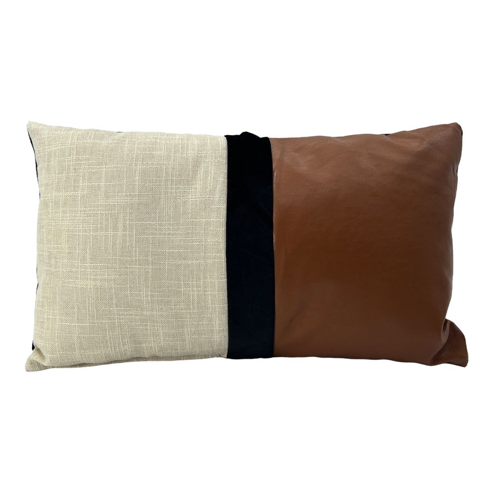 Cojín combinado en beige, negro y cuerina, estilo contemporáneo