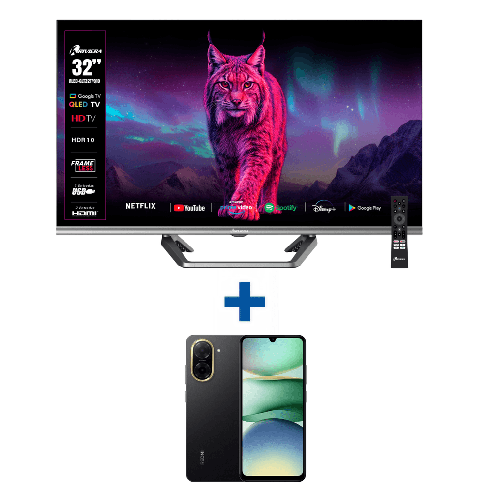 Combo Televisor Riviera de 32" QLED UHD 4K + Celular Redmi A5 128 GB + 4 GB Ram Xiaomi