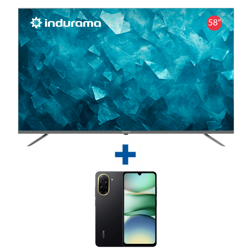 Combo Televisor Indurama 58" UHD 4K Google TV + Celular Redmi A5 128 GB + 4 GB Ram Xiaomi
