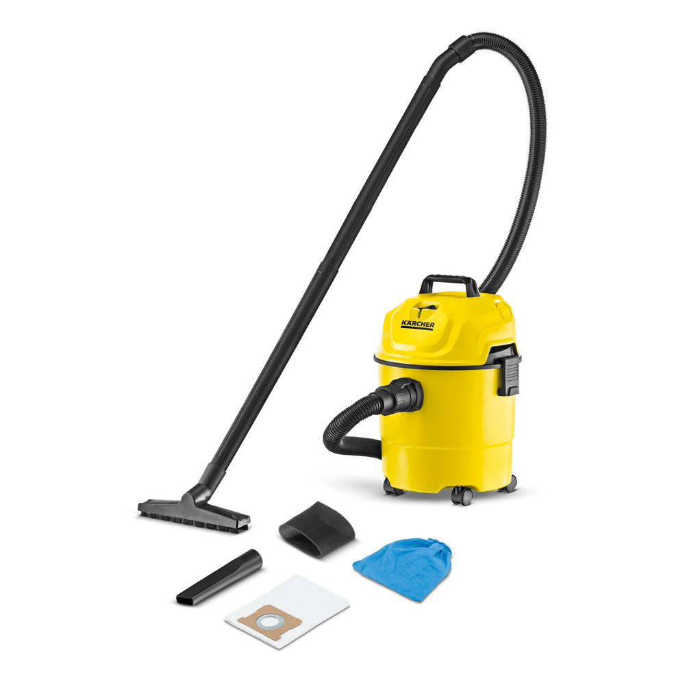 La aspiradora multiuso WD 1, potente y energéticamente eficiente, convence por sus múltiples posibilidades de uso. Complementos: Boquilla para suelos conmutable: Para aspirar alfombras y suelos duros. Práctico almacenaje de accesorios y cables: Almacenaje seguro, compacto y al alcance de la mano de los accesorios incluidos. Práctica función de soplado: La práctica función de soplado es muy útil allí donde no se puede aspirar. Variedad de aplicaciones: Puede aspirar sin esfuerzo la suciedad seca o húmeda.
