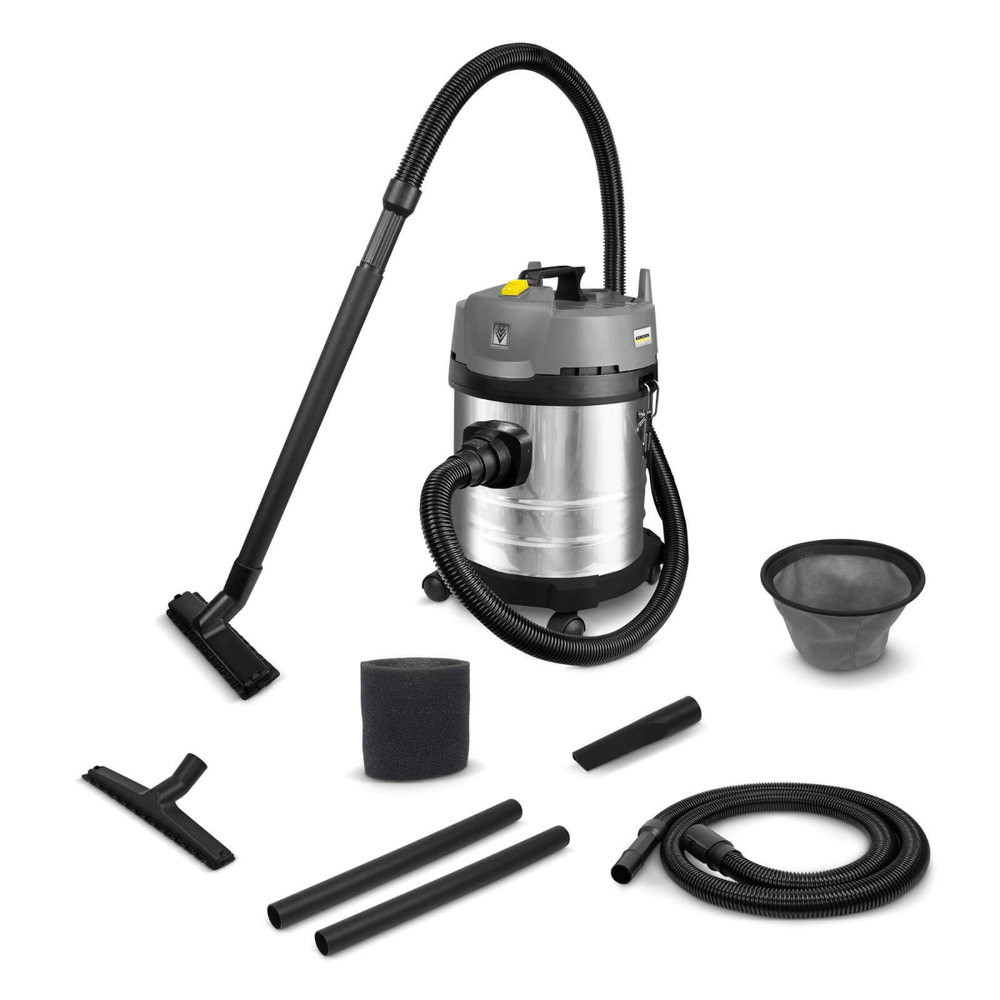 La aspiradora está completamente equipada con un tanque de acero inoxidable y eficaces accesorios, por lo que se puede utilizar de inmediato.