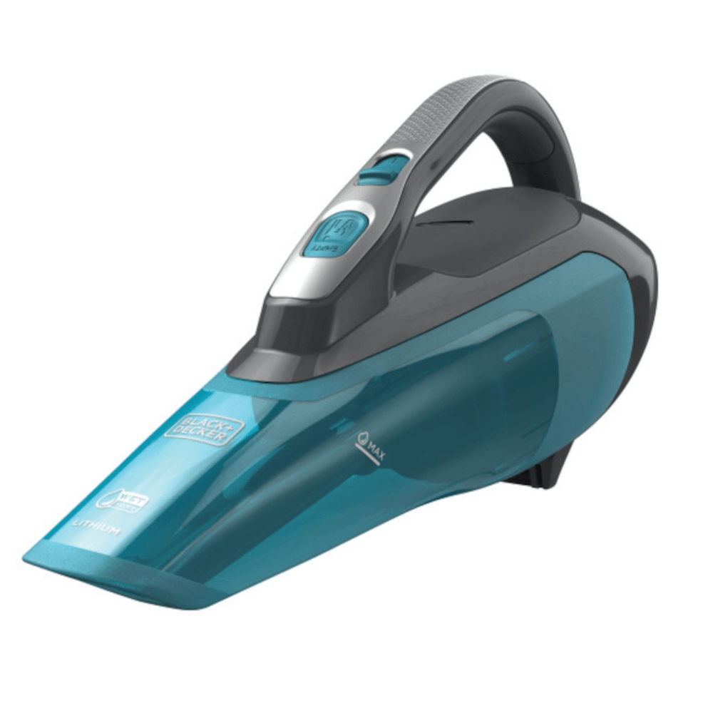 Dustbuster Aspiradora de mano Inalámbrica aspirando en mojado o seco Liviana con luz indicadora de carga Incluye: Filtro lavable, herramienta escurridor de empuje, cargador conector jack, montaje en pared Batería de iones de litio para mejor succión y larga duración de carga.