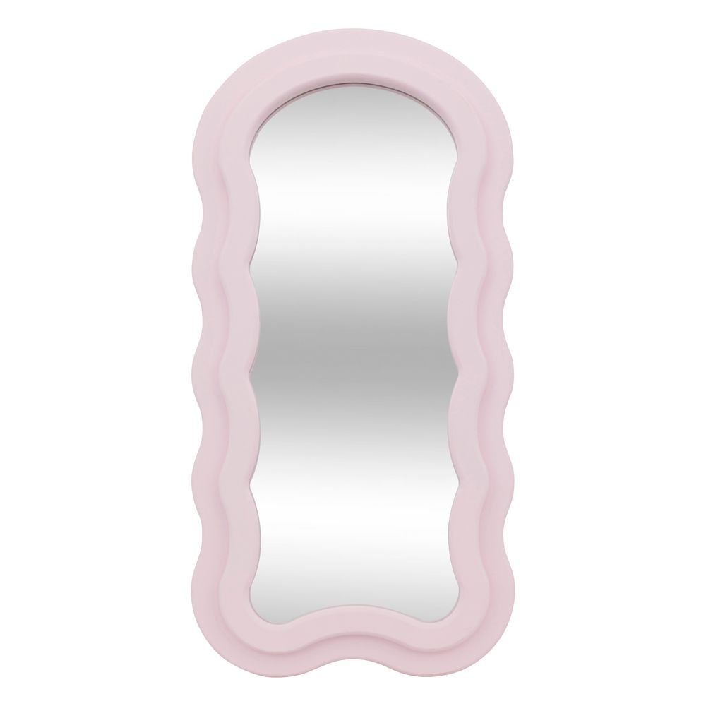Espejo infantil Ayna con diseño de ondas, fabricado en MDF y acabado en color rosa. Sus dimensiones de 60 x 30 cm lo convierten en un complemento funcional y decorativo para habitaciones infantiles.