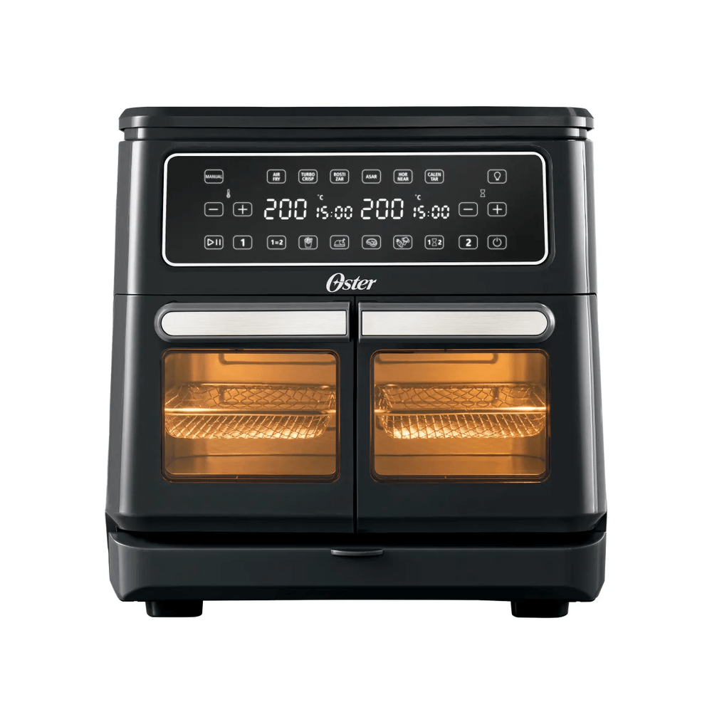Freidora de Aire Oster Doble Canasta 11 Litros• Freidora de aire con 2 zonas de cocción independientes de 5.5 L cada una.