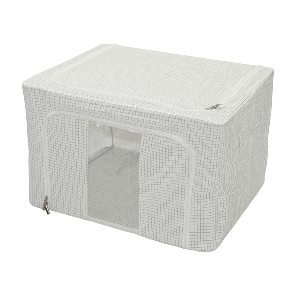 La funda de doble apertura beige con diseño de cuadros de 50 x 40 cm es una opción funcional para almacenar y proteger diferentes artículos del hogar. Su diseño espacioso permite guardar ropa, mantas o textiles, manteniéndolos organizados y protegidos. Su sistema de doble apertura facilita el acceso al contenido, ofreciendo mayor practicidad para el uso diario en closets o áreas de almacenamiento.