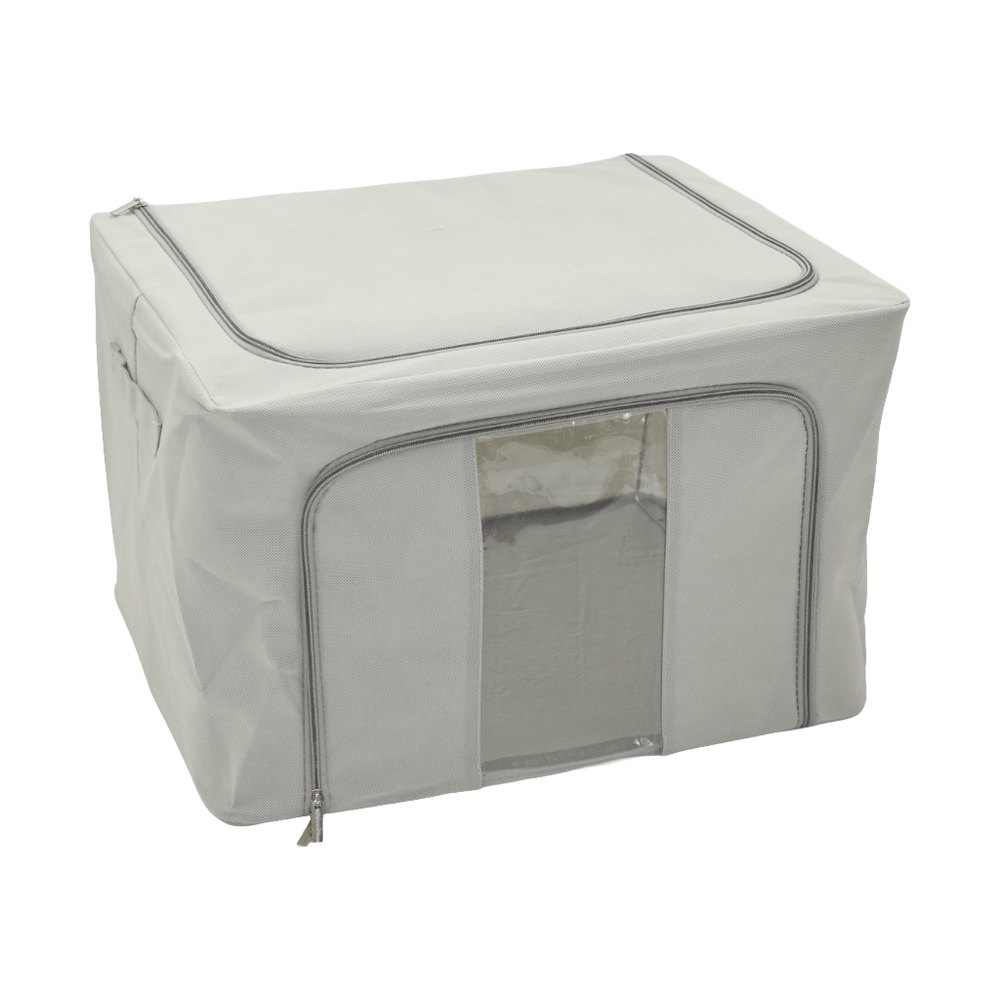 La funda de doble apertura en color gris de 50 x 40 x 33 cm ofrece una solución de almacenamiento amplia y funcional para el hogar. Su diseño con doble acceso facilita guardar y retirar prendas, mantas o textiles de manera cómoda, manteniéndolos protegidos del polvo y la humedad. Su estructura ligera y resistente permite aprovechar mejor el espacio en armarios, repisas o áreas de almacenamiento.