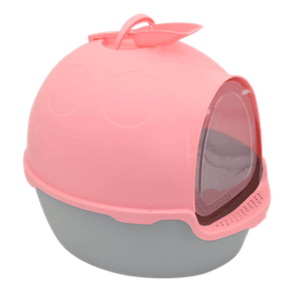 Caja de arena para gatos cubierta ovalada. Fabricada con plástico resistente, haciéndola ligera y fácil de limpiar. Ayuda a que tu gato se limpie y se sienta cómodo.