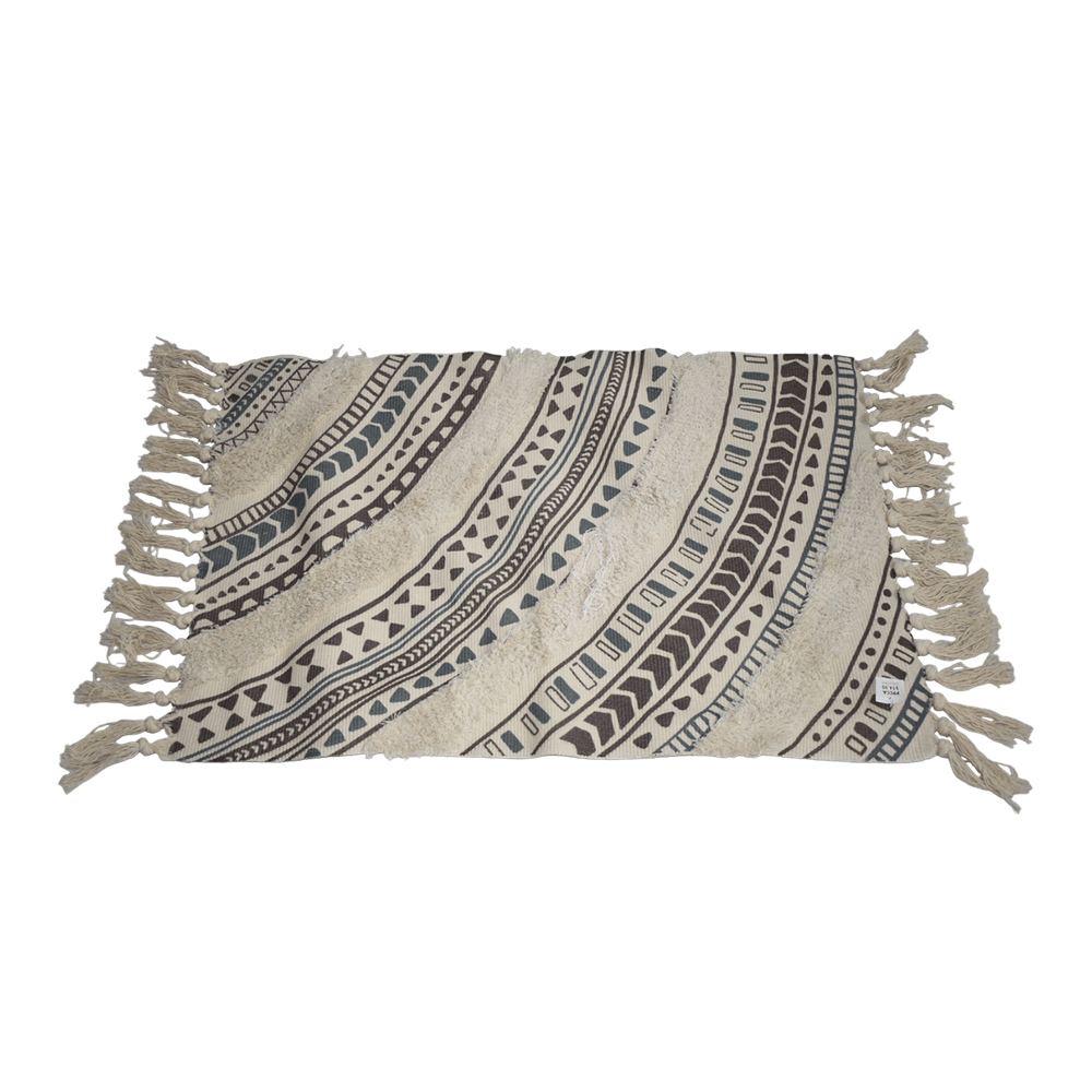 Alfombra Tejida Ondas de Algodón Azul Crema 60 x 90