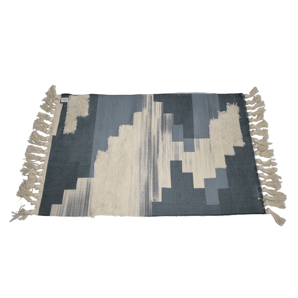 Alfombra Tejida Ondas de Algodón Azul Crema 60 x 90