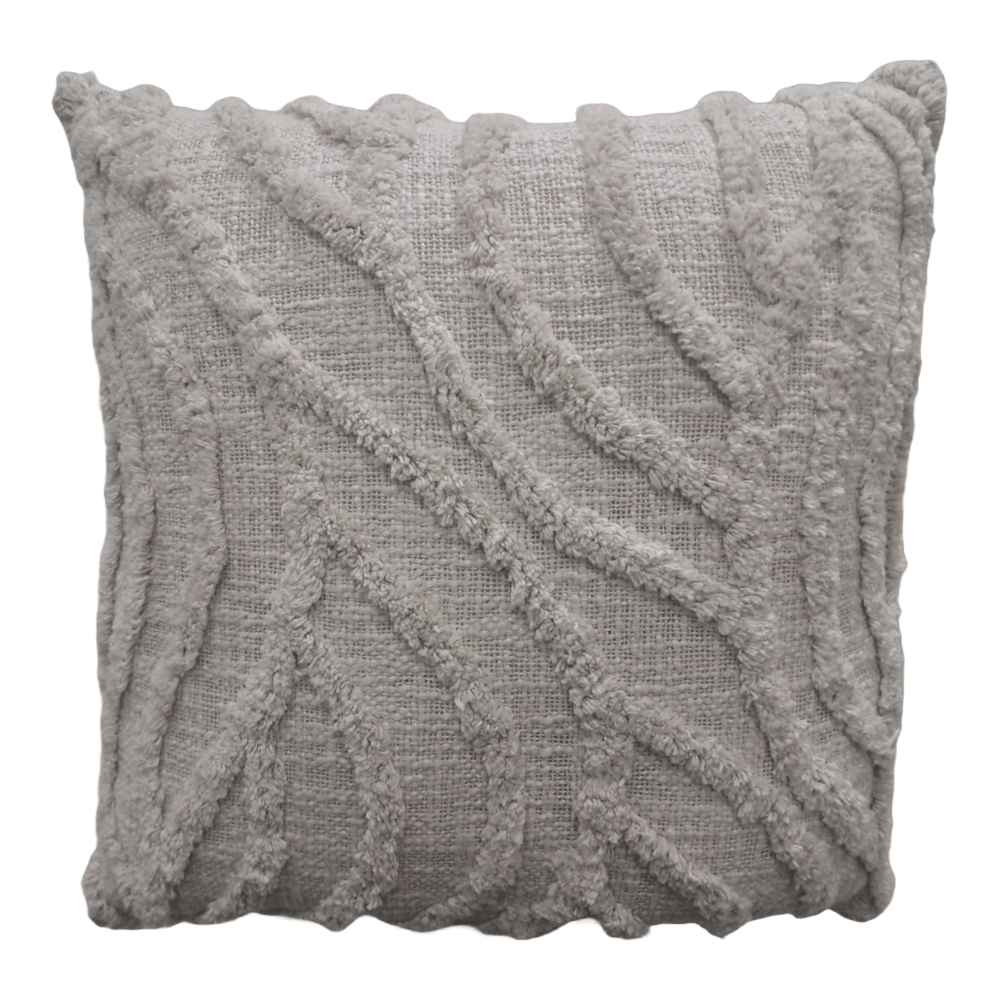 Suave a la vista y al tacto, este cojín beige ceniza despliega ondas en relieve que recorren toda la superficie, generando movimiento y romanticismo. Es la pieza ideal para suavizar líneas rectas de mobiliario contemporáneo, equilibrando esquinas y perfiles marcados. Úsalo en cama como remate de una composición de almohadas o sobre un banco de recibidor, añadiendo una nota de elegancia orgánica que invita a largas horas de contemplación serena.
