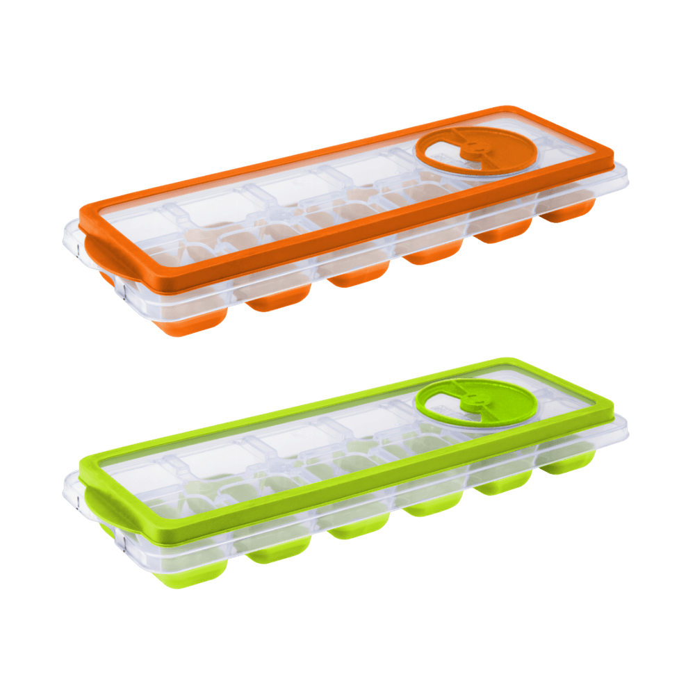 Molde para hielo con tapa, ideal para hacer cubitos de hielo sin derrames, manteniendo el congelador ordenado.