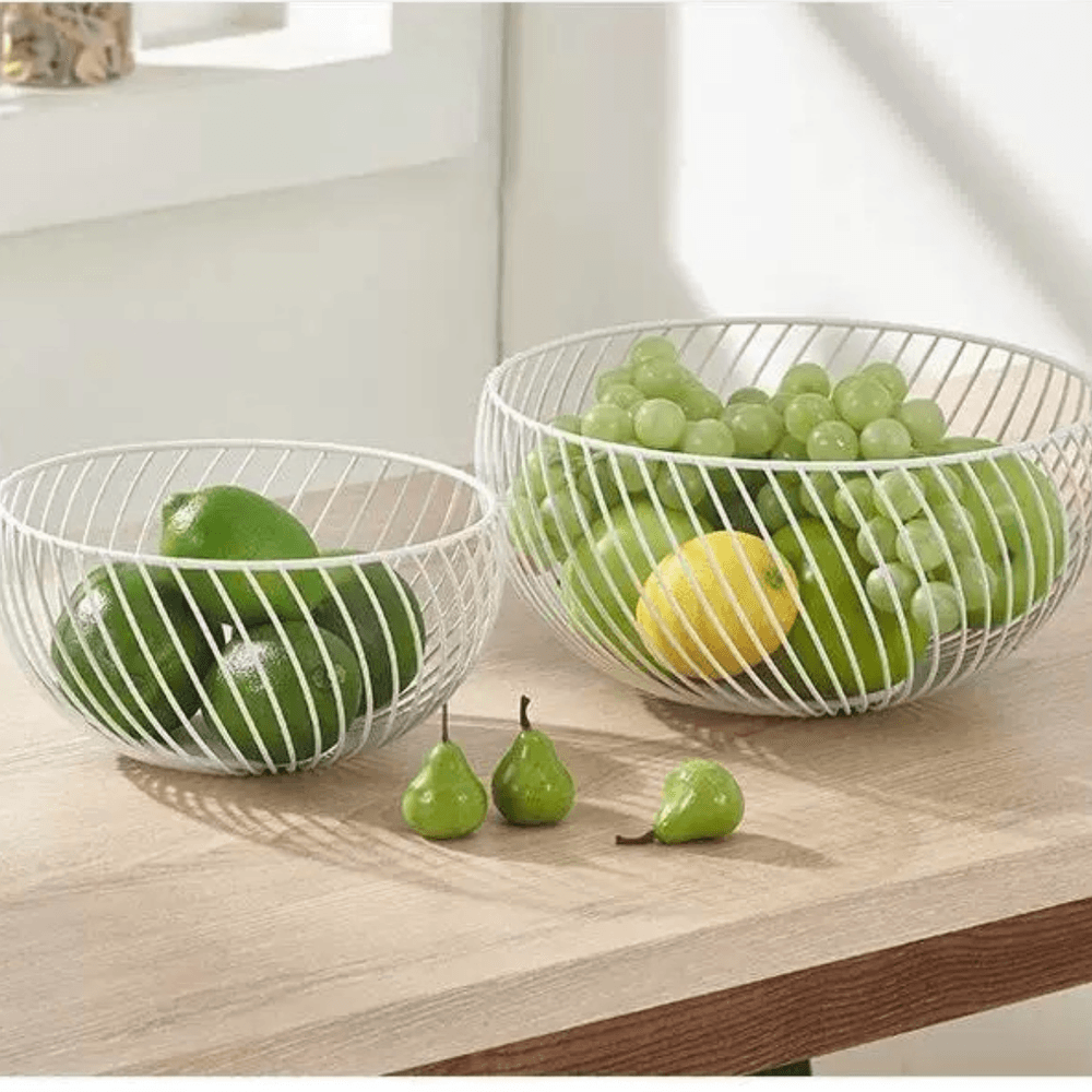 Frutero blanco de tamaño mediano, perfecto para complementar cocinas de estilo limpio y moderno.