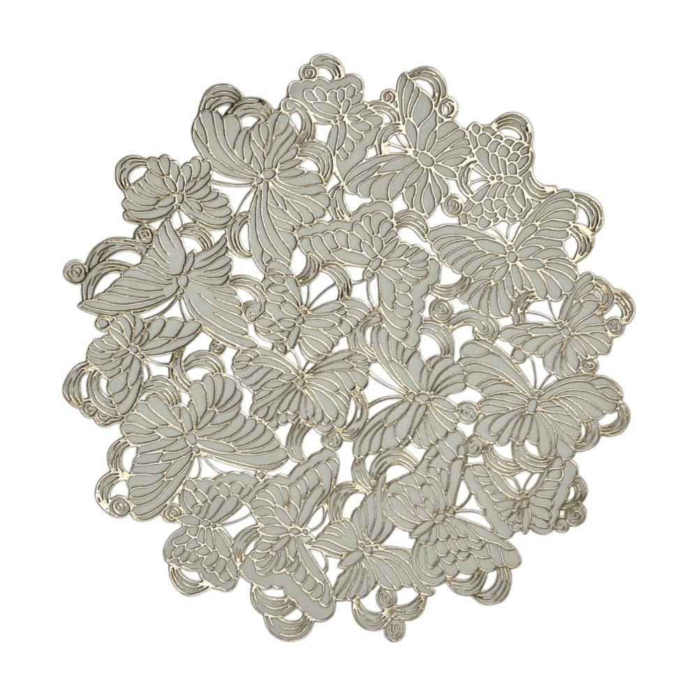 Individual redondo decorado con mariposas, ideal para ocasiones especiales.