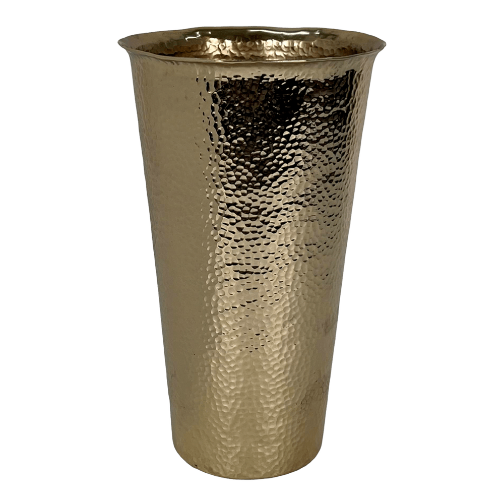 Con su acabado en dorado, este florero de aluminio es perfecto para añadir un toque de glamour y lujo a cualquier estancia. Su diseño elegante realza tanto arreglos florales como espacios vacíos, aportando luminosidad y estilo.
