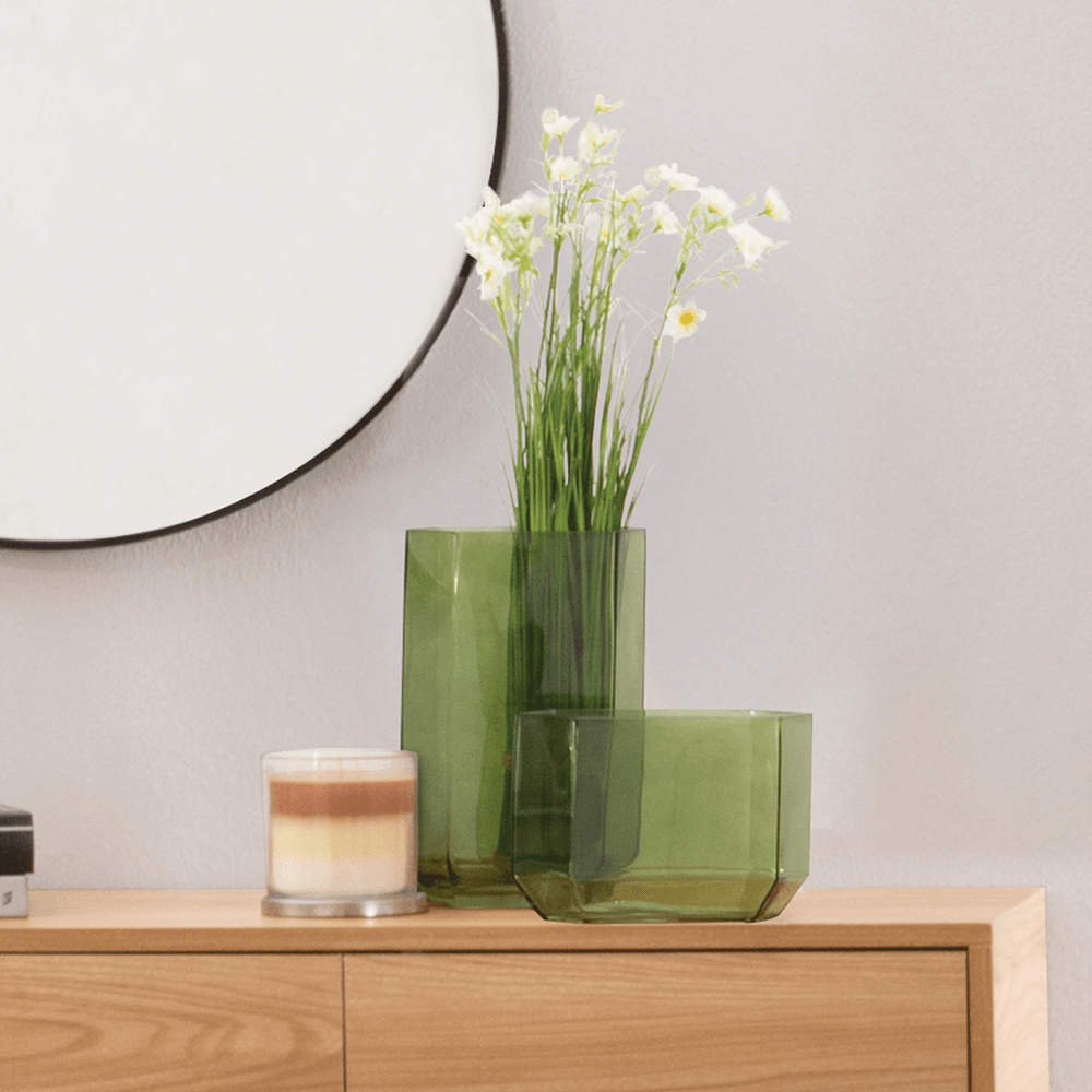 Eleva el diseño de tu hogar con un toque sofisticado y elegante, complementando la decoración de manera moderna y estilizada. Perfecto para exhibir flores frescas o como una pieza central de cualquier habitación, reflejando la luz de manera única y creando un ambiente acogedor y sofisticado.
