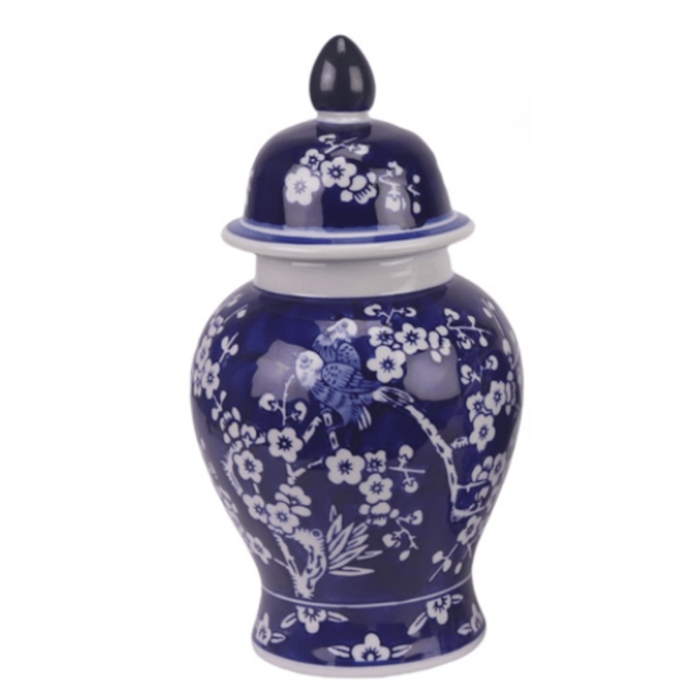 Jarrón botanical con tapa azul con flores azul 26 x 13 cm