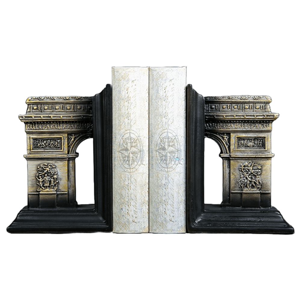 Un homenaje a la elegancia clásica, estos separadores de libros evocan pequeñas fachadas con un acabado que sugiere antigüedad. Aportan equilibrio visual y una estética refinada en repisas o muebles de madera oscura. Perfectos para acompañar una biblioteca decorativa o enriquecer composiciones en oficinas o salas de estar con toques tradicionales.