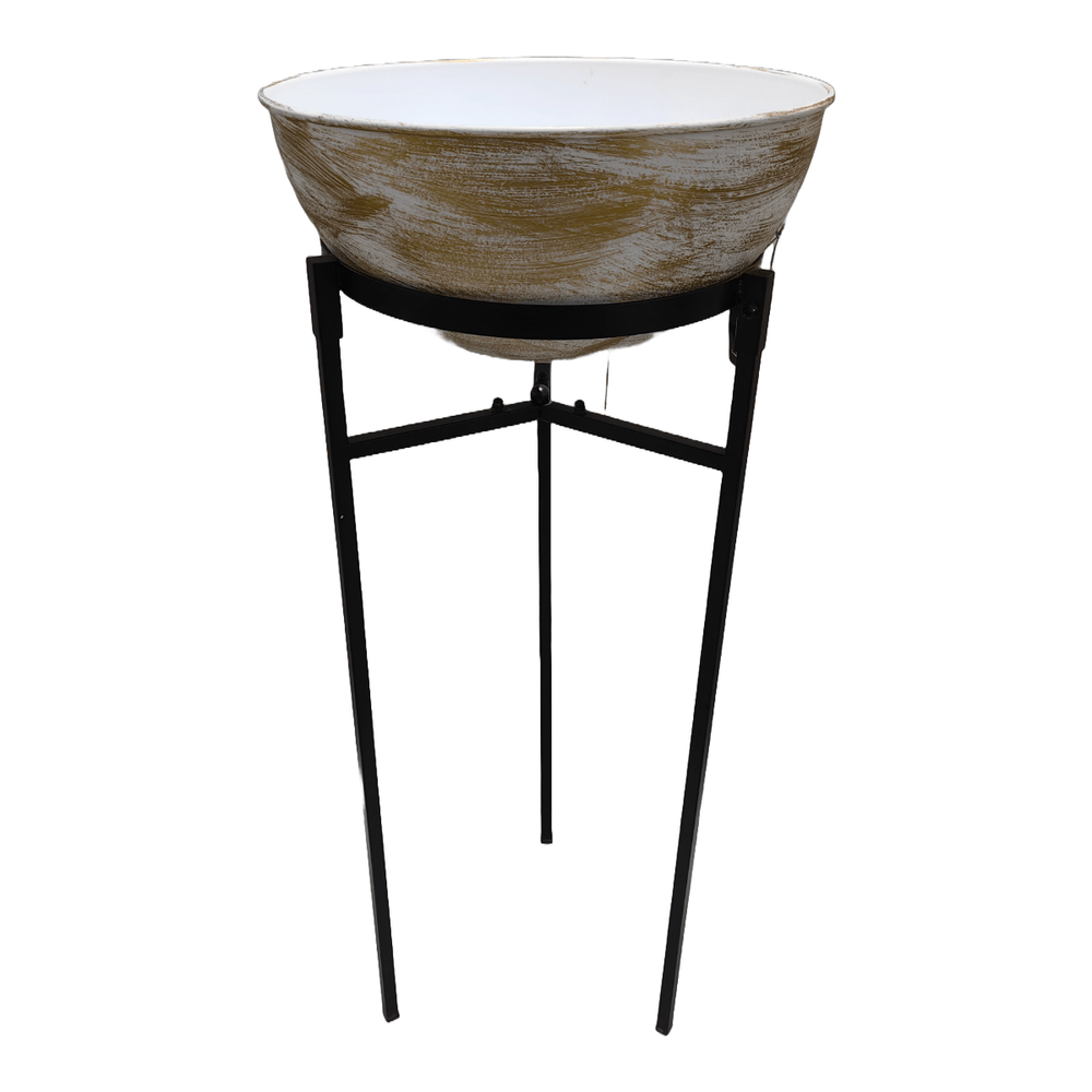 Con una estructura esbelta y refinada, esta pieza transforma una planta en un objeto decorativo protagónico. Su gran altura y combinación cromática le otorgan presencia escultural, perfecta para dividir ambientes sutilmente o marcar focos visuales. Ideal para ambientes abiertos o zonas de transición con techos altos.