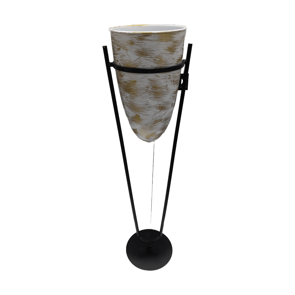 Este porta-maceta de diseño estilizado eleva la elegancia en cualquier ambiente. Perfecto para flanquear entradas, ventanas o pasillos angostos, su acabado dorado aporta luz y calidez. Ideal para integrar plantas colgantes o de hojas alargadas, creando una verticalidad que complementa el ritmo visual de espacios altos o lineales.