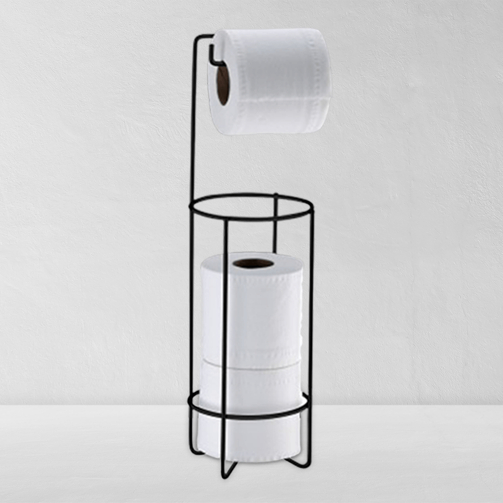 Práctico porta rollo de color negro para almacenar y decorar tu baño