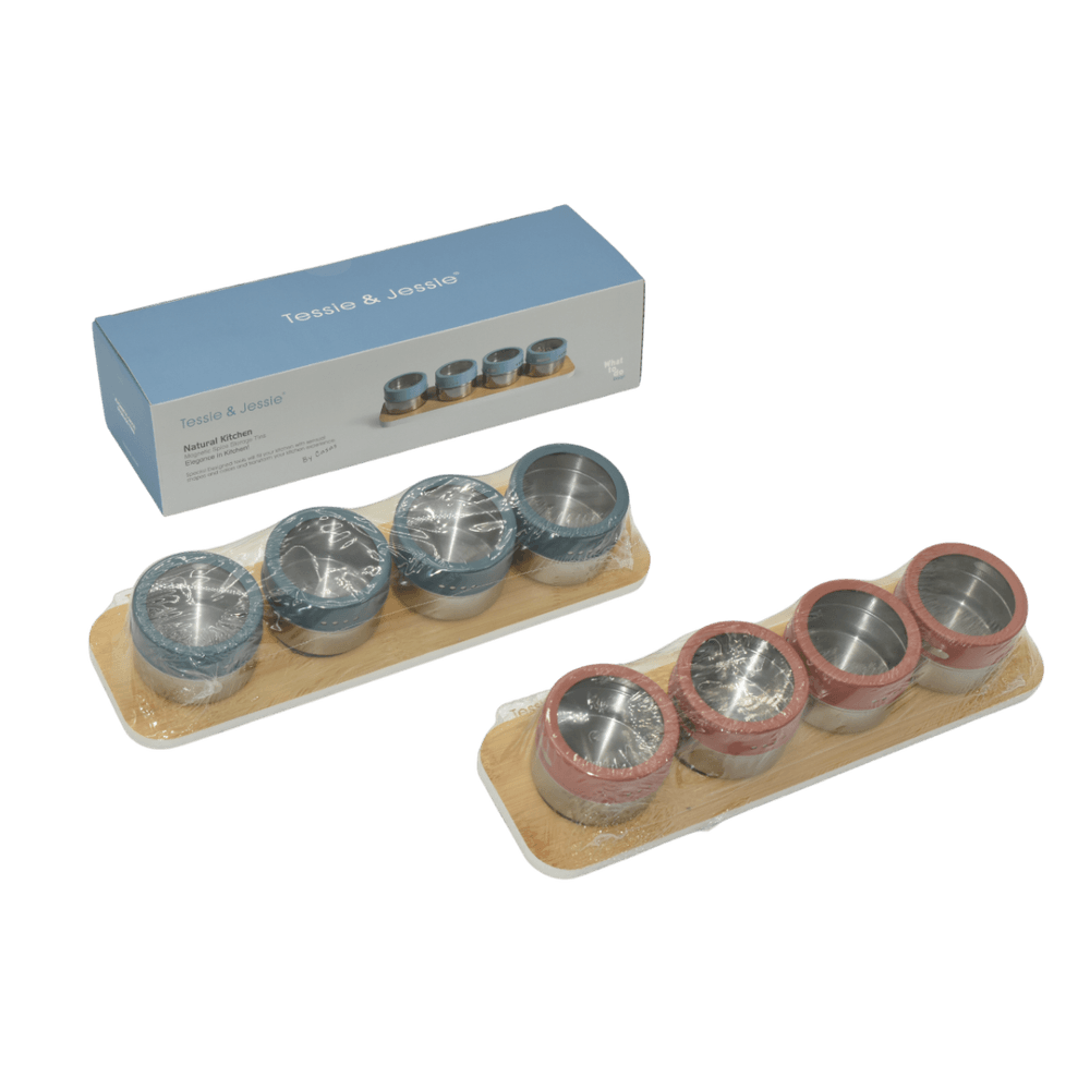 Set de 4 piezas de condimenteros con base de bambú Utensilios y accesorios de cocina prácticos y funcionales, ideales para preparar, servir y organizar tus alimentos con facilidad y estilo.