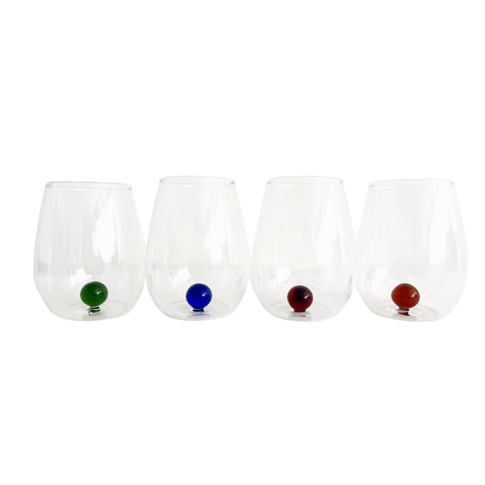 Set de 4 vasos con diseño circular interior decorativo. Con capacidad de 400 ml, son ideales para bebidas frías y aportan un detalle visual original a tu mesa.