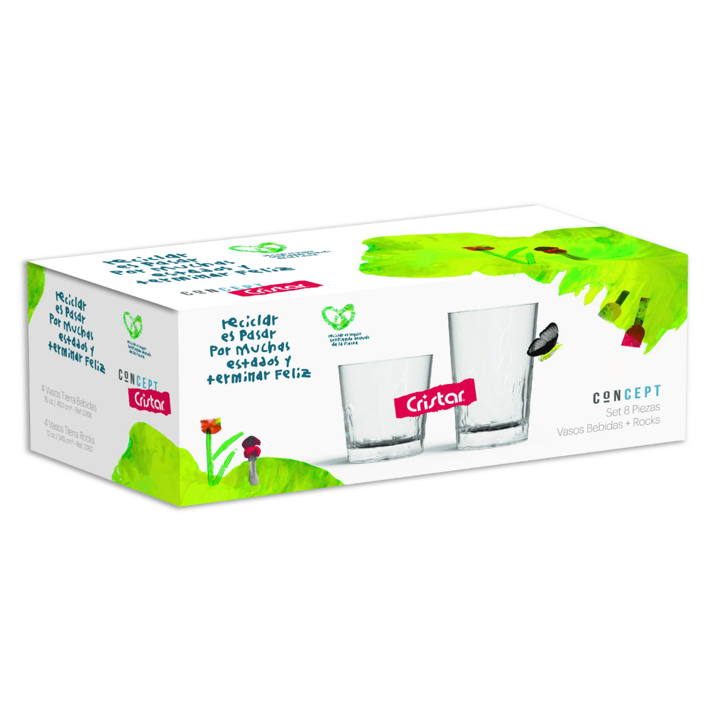 Vasos Tierra Rocks 15 oz y Bebidas 15 oz 8 piezas