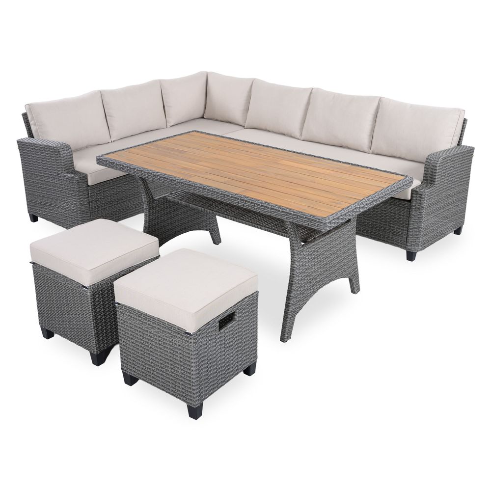 | Material | Armazón de acero galvanizado con recubrimiento, Mimbre de plástico y Tela de cojín de 230gr |