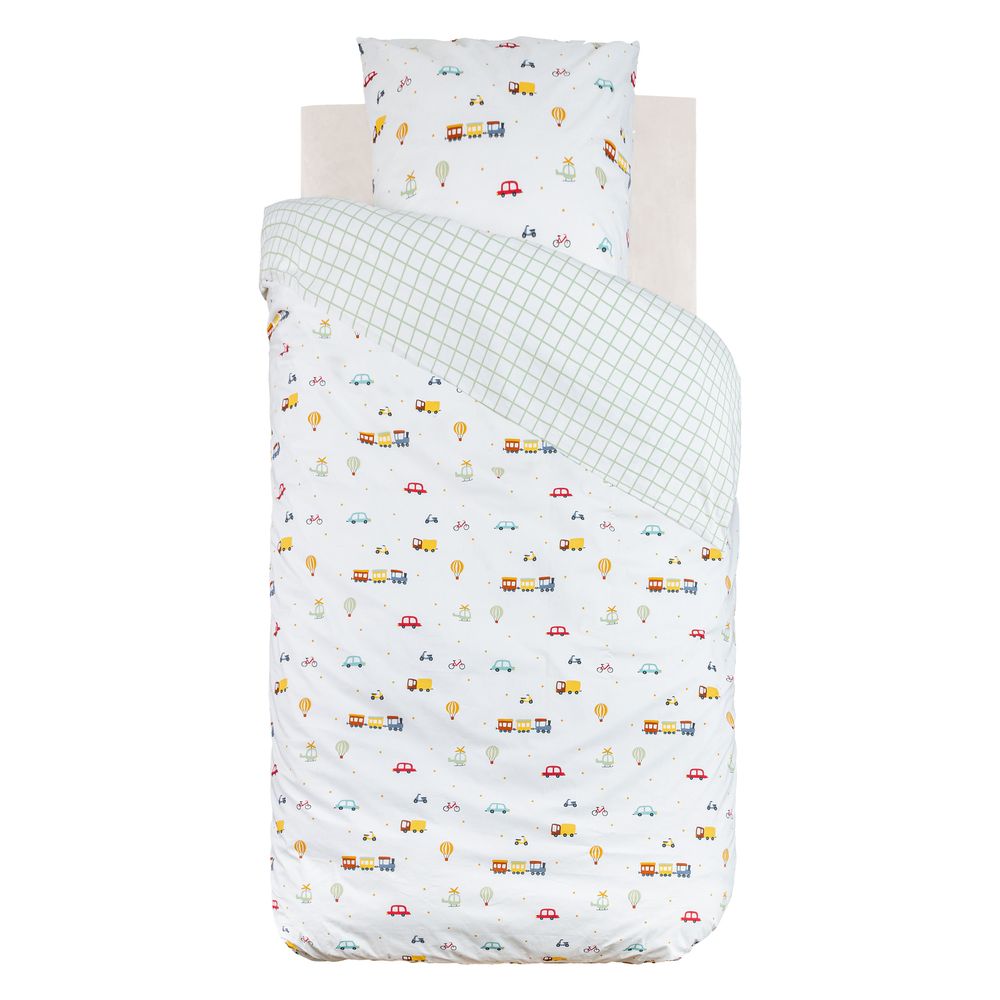 Juego de sábanas infantil con diseño de autos, ideal para complementar la cama y aportar un estilo divertido. Es perfecto para dormitorios infantiles.