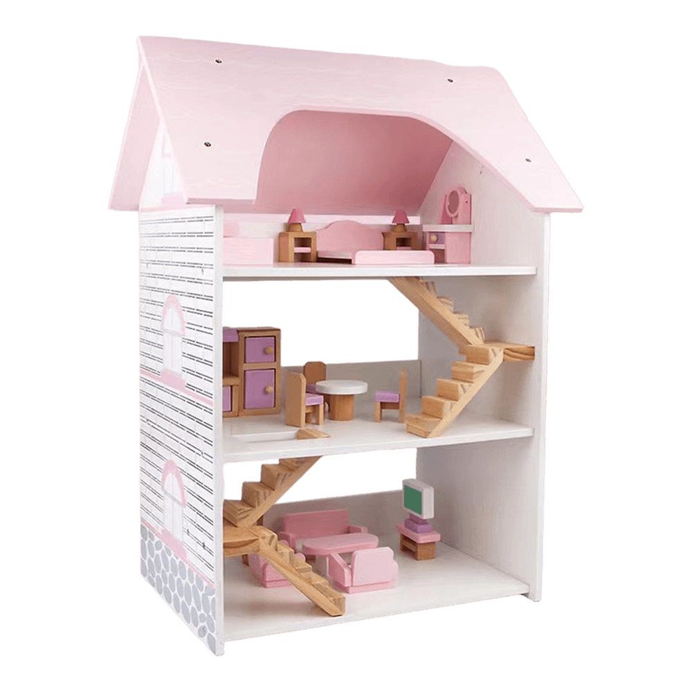 Juguete de Madera Casa Muñecas Rosa Pastel