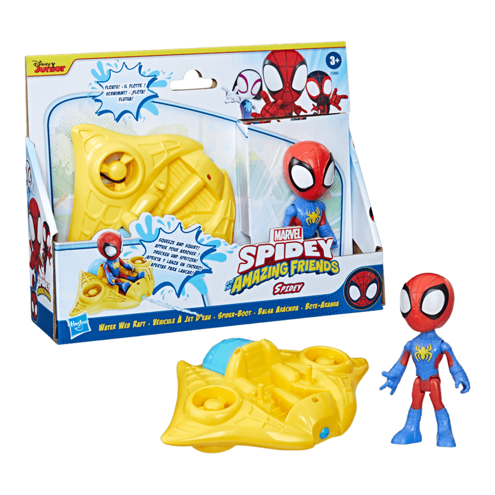 Hasbro Marvel - Spidey and his Amazing Friends - Balsa Arácnida de Spidey - Figura de Acción con Vehículo - Juguete para Agua de 10 Centímetros