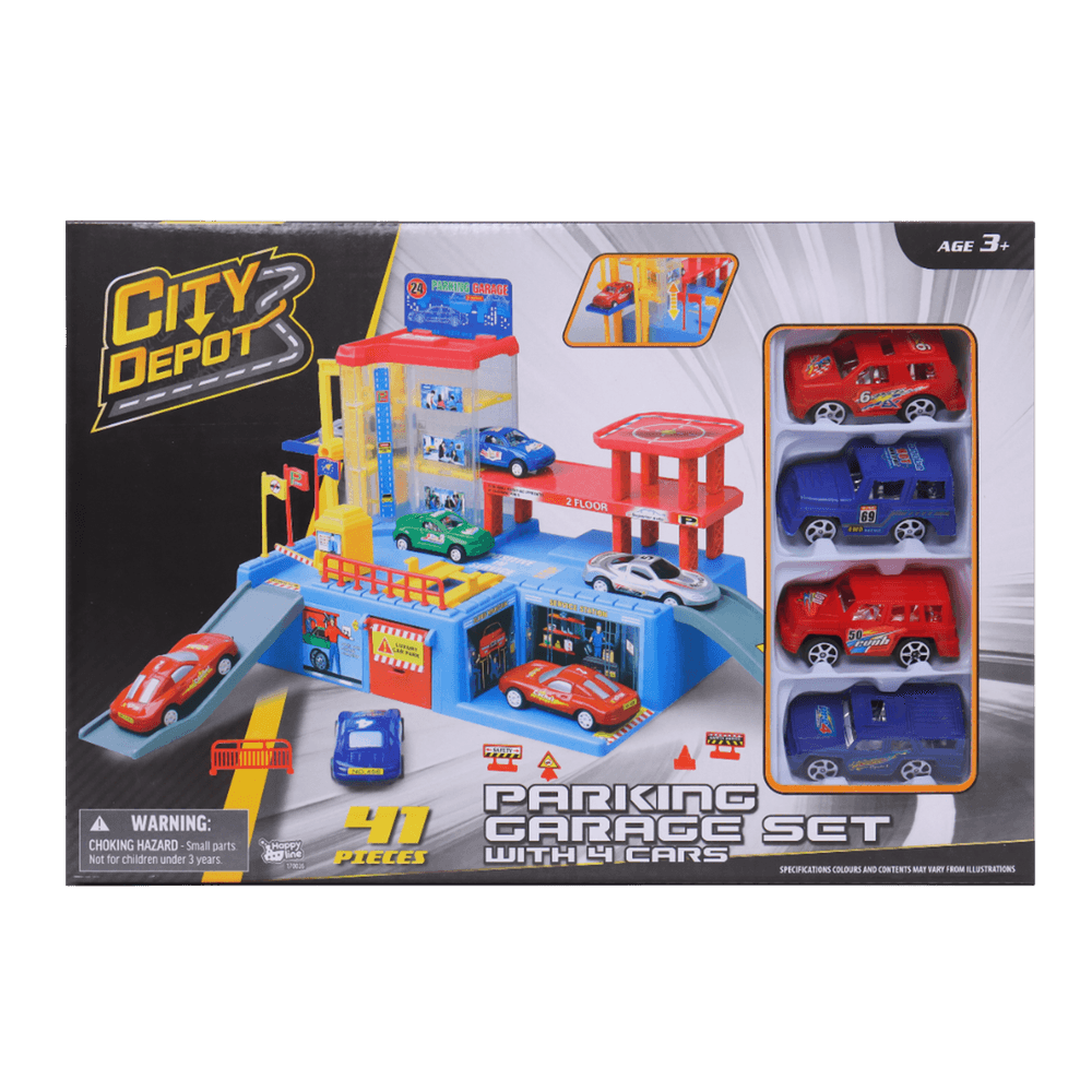 ¡Estaciona y juega sin parar! Parking Garage con 4 vehículos para diversión y carreras emocionantes.