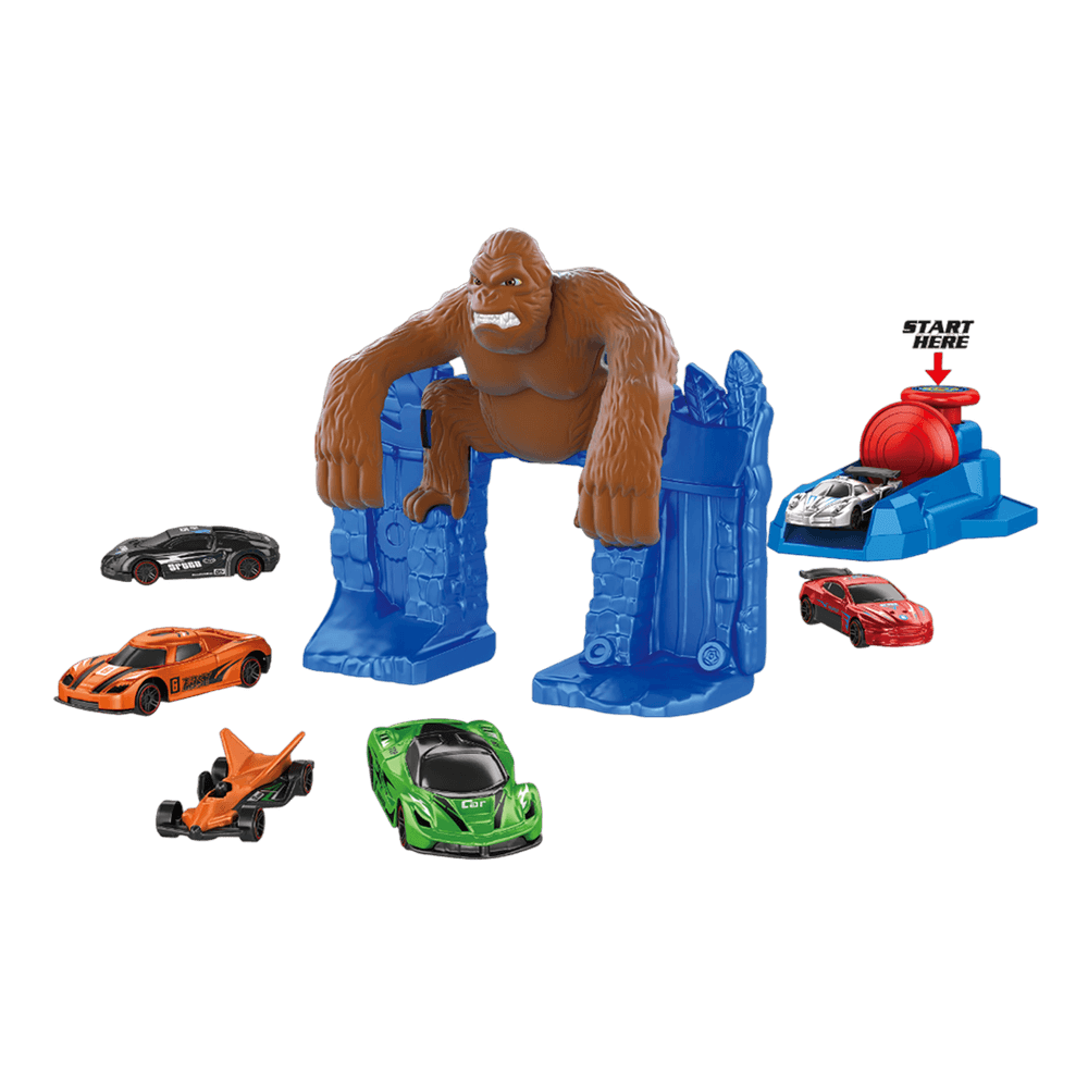 ¡Corre con fuerza y velocidad! Pista Minicar Gorila para pequeñas carreras llenas de diversión y emoción.