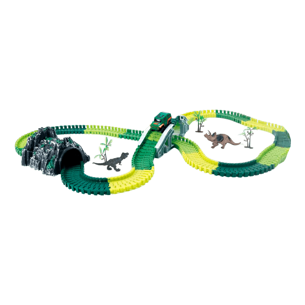 Arma tu propia aventura jurásica con esta pista Dinosaur Rail de 250 piezas. ¡Diversión creativa y salvaje sin límites!