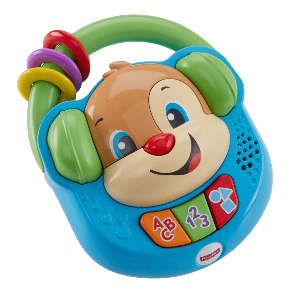 ¡Perrito está listo para bailar y cuenta con la selección musical para hacer bailar a tu bebé! Con presionar uno de los tres botones de colores, el Reproductor Canta y Aprende, de Ríe y Aprende®, cobra vida con luces, canciones y frases que enseñan el abecedario, las figuras, los colores y los números.