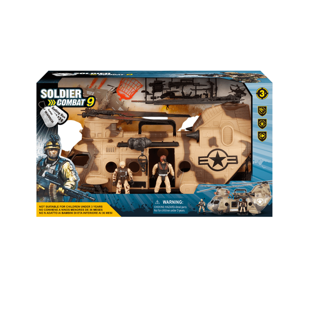 Surca los cielos con este set de combate que incluye un helicóptero. Perfecto para misiones estratégicas llenas de acción y aventuras aéreas.