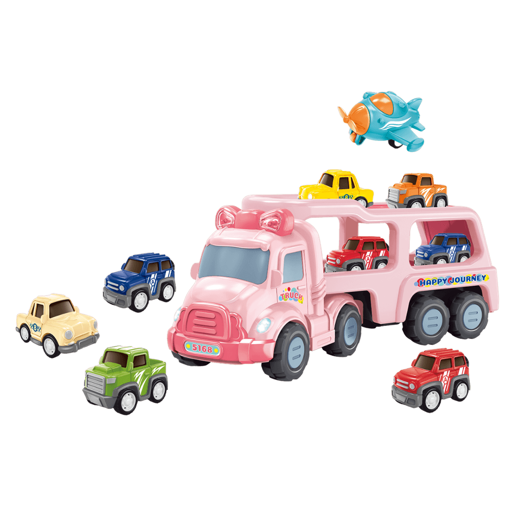 Transporte y diversión en un solo set con el Carro Carga con 4 Carros Color Rosa. Este camión de carga incluye cuatro vehículos en tonos rosa, listos para ser transportados o desplegados en emocionantes carreras. Perfecto para pequeñas aventureras que buscan acción y estilo en cada juego. ¡La diversión sobre ruedas está asegurada!