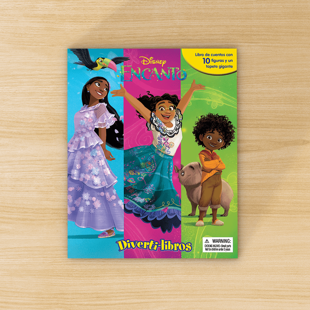 ¡Un cautivador libro de cuentos y un juguete en un solo paquete! Diverti-libros tiene ilustraciones de página entera. un cuento, 10 figuras y un tapete de juego que dan vida a los personajes y que harán volar la imaginación de sus hijos.