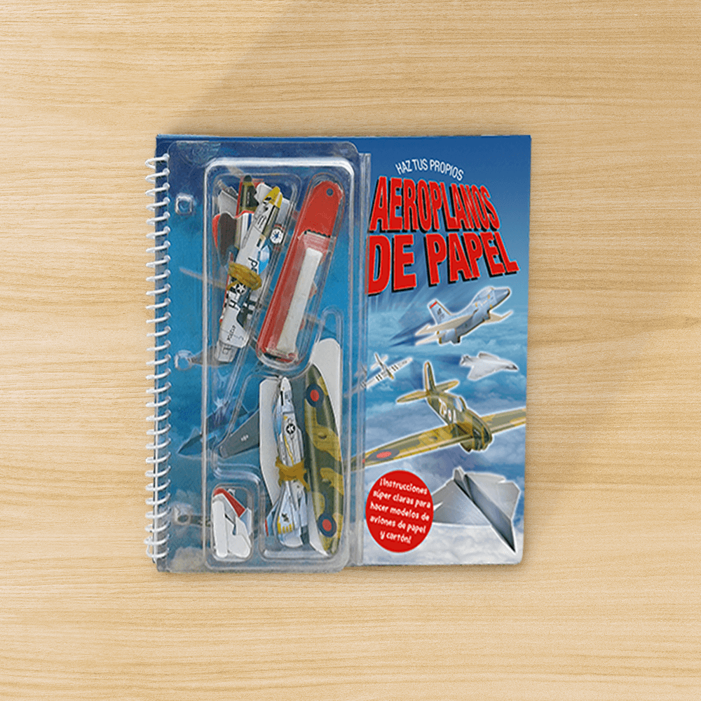 Incluye 12 microaviones y 16 hojas de papel para construir.