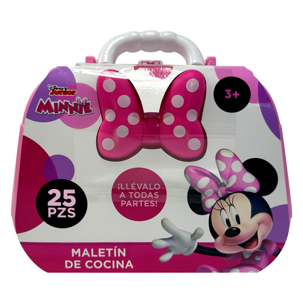 ¡Cocina con estilo junto a Minnie! Este maletín incluye utensilios y accesorios de juguete para preparar deliciosas recetas imaginarias. Ideal para juegos de rol creativos.
