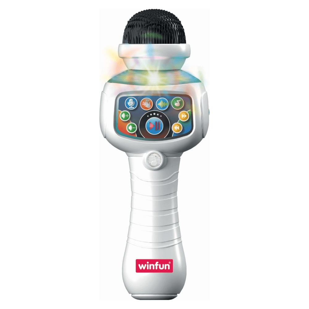 | Funciones | Micrófono inalámbrico con luces de colores: Efectos de cambio de voz, botón de aplausos, ritmos de beatbox y melodías infantiles. Controles de volumen y botones para reproducir, pausar o cambiar canciones. |