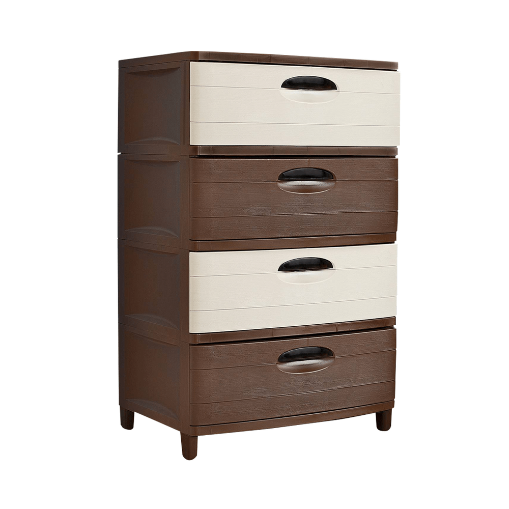 Pica diseña muebles inspirados en las tendencias del momento que hacen que cada pieza se conviertan en un artículo único con el estilo que quieres y que se ajusta a tu necesitad. Esta hermosa cajonera es ideal para tu dormitorio, su color beige con café combinará perfectamente con el ambiente, trae diseño con textura de madera. Con 4 cajones espaciosos para que puedas guardar y organizar tu ropa y accesorios, contiene 1 cajón con división interna. Gracias a su versatilidad también es ideal para organizar tus herramientas de trabajo. Elaborada en plástico con protección solar UV, el cual la hace resistente a los rayos solares, a la humedad y al polvo. No se apolilla ni se deteriora, creada para todo tipo de ambiente.