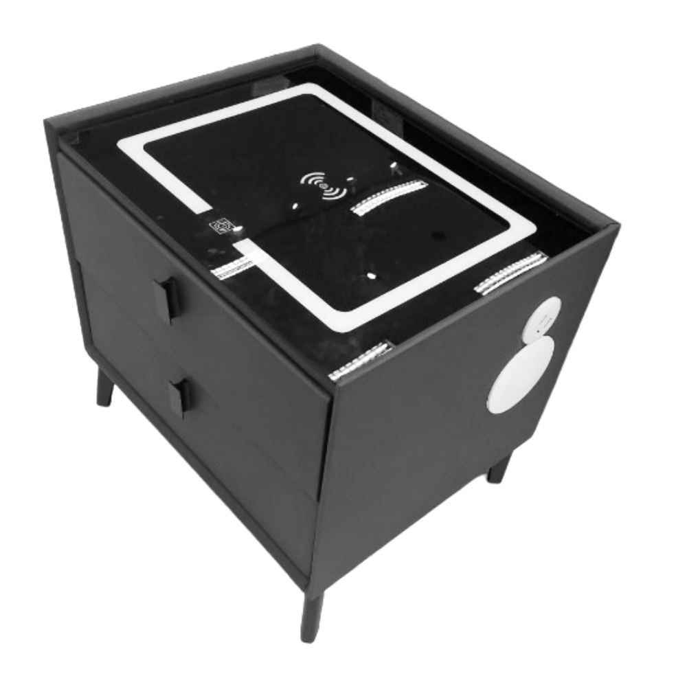 Este velador moderno combina funcionalidad y tecnología en un solo diseño. Equipado con un parlante Bluetooth integrado, te permite disfrutar de tu música favorita sin ocupar espacio adicional. Su estructura elegante y minimalista ofrece almacenamiento práctico, ideal para complementar tu dormitorio con estilo e innovación